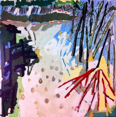 Demonstration Forest, 2012; acrylic, conte, oil and wax on panel, 36 x 36″. Private Collection.